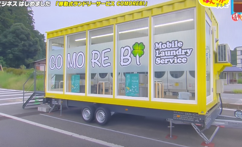 Cette laverie libre-service mobile a été étudiée et développée par une célèbre entreprise de fret japonaise "Yamamoto Transport” .