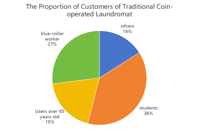 Laverie traditionnelle à pièces sec compte s Les utilisateurs représentent 42 pour cent du marché mondial du libre-service, les étudiants représentant 38 pour cent (selon l'Unmerican Lblanchisserie Association), les cols bleus (27 pour cent) et les utilisateurs plus âgés (19 pour cent de plus de 65 ans).