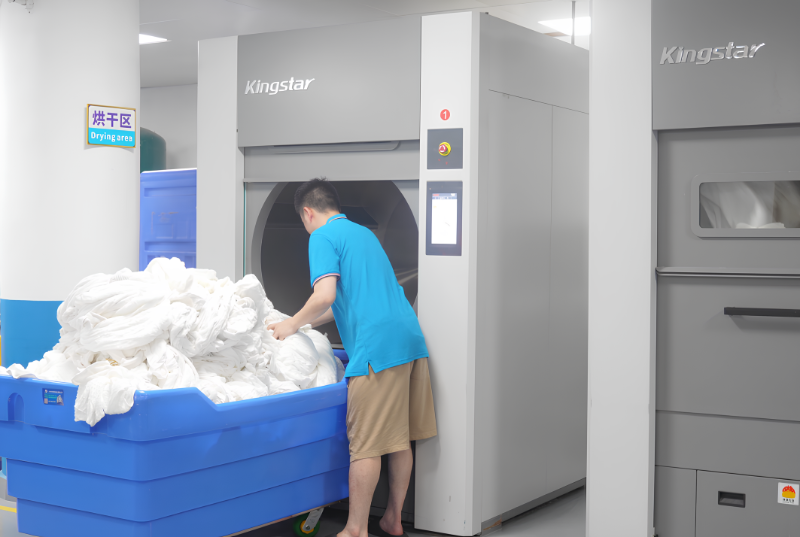 Kingstar séchoir industriel dispose de la technologie de contrôle de l'humidité pour contrôler intelligemment le temps de séchage et le taux d'humidité du linge. Cela peut éviter d'endommager les vêtements causés par un séchage excessif et réduire la consommation d'énergie lors du processus de séchage. Un sèche-linge de 100 kg peut charger 100 kg de serviettes une fois. Si la pression de la vapeur est supérieure à 5 kg, les serviettes seront séchées en 40 minutes, ce qui est très efficace et rapide.