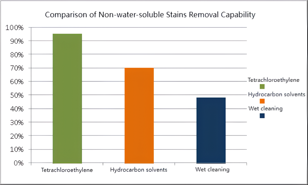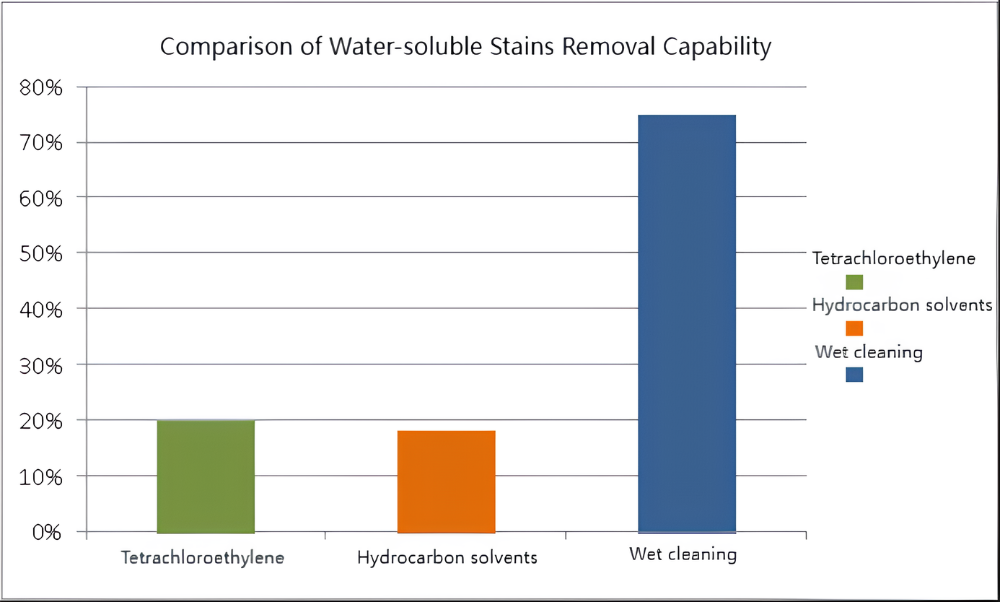 La capacité de lavage est un critère crucial dans la technologie des blanchisseries. Étant donné que les principes de base du nettoyage humide et du nettoyage à sec diffèrent, leur efficacité varie en fonction des différentes taches. Nettoyage humide fonctionne mieux avec les taches et les odeurs solubles dans l'eau, tandis que le nettoyage à sec traditionnel est plus efficace pour les taches non solubles dans l'eau comme l'huile.